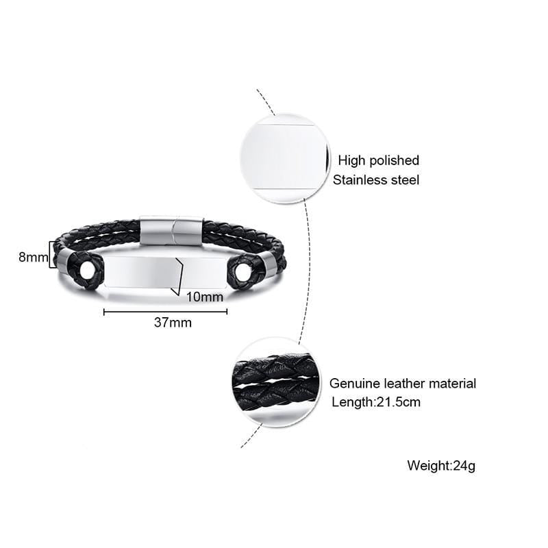 Stainless Steel Men's Leather ID Bracelet Comes with an elegantly designed and sturdy gift box that is ideal for storing and presenting jewellery.