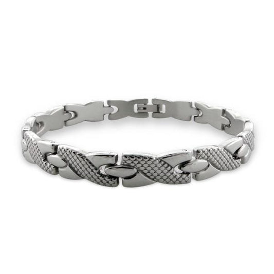 Stainless Steel Magnetic Bracelet This stunning custom engrave bracelet is elegant and stylish with beautiful two-tone links of gold and charcoal grey and a shining message panel. Perfect for birthdays, anniversaries or other special events, this special bracelet is sure to be a gift...- $119.90
