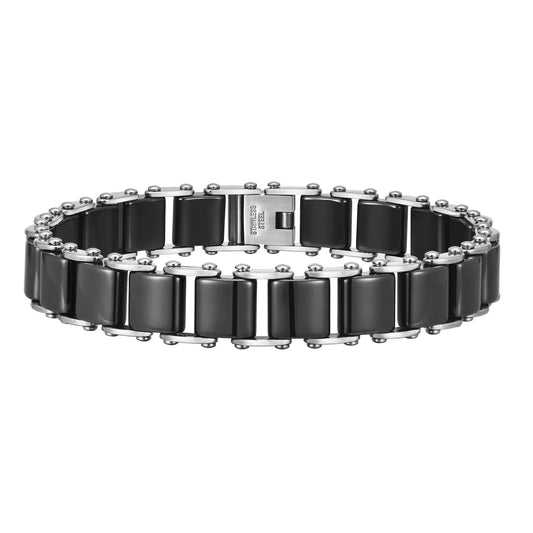 Pure Black Stainless Steel Mens Ionised Magnetic Link Bracelet