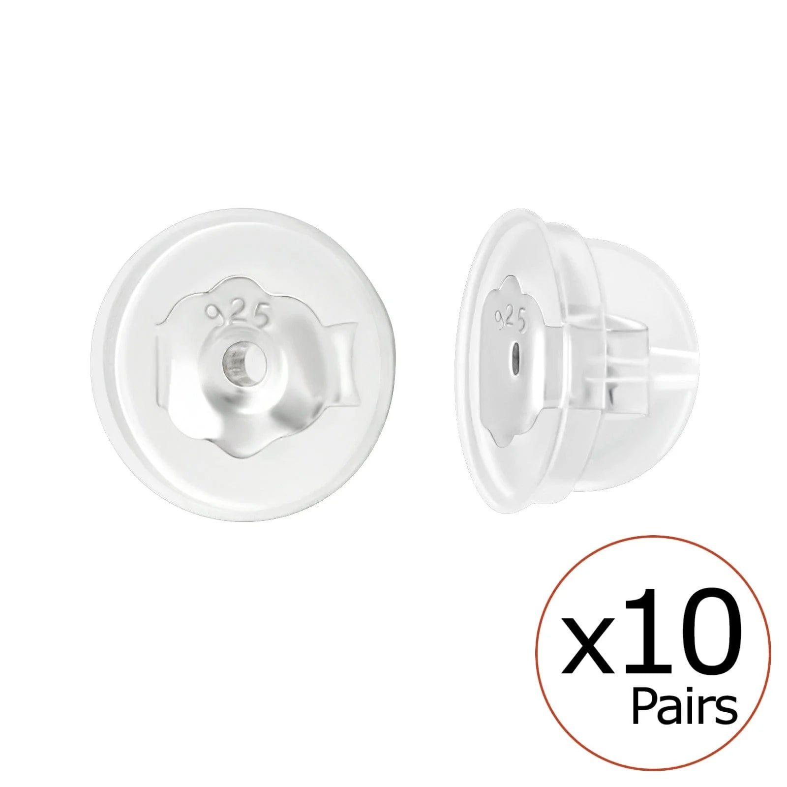10 Pairs Silicone Coated Silver Butterfly Backs