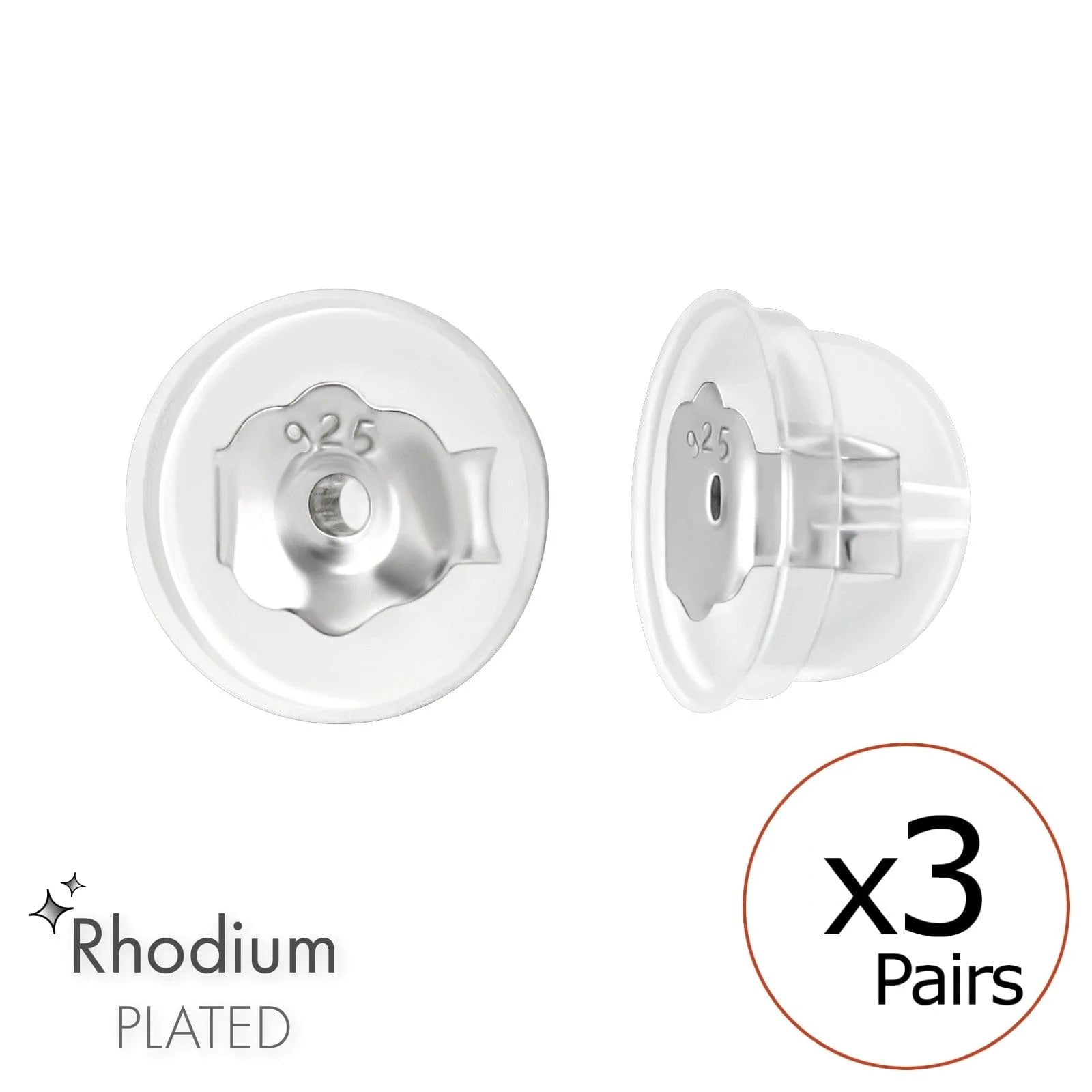 3 Pairs Silver and Silicone Butterfly Backs