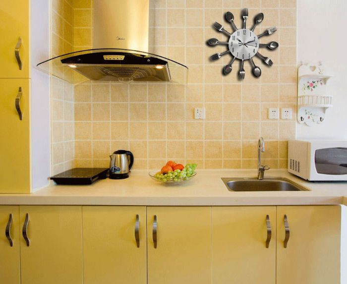 Kitchen Cutlery Wall Clock with Forks and Spoons for Home.