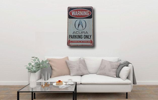Acura Parking Only Sign Metal Poster - Wall Metal Tin Poster will adorn the look and feel of your wall. The wall poster has dimensions of 20 x 30 cm and can be stuck in any corner of your room and it will look just as great.