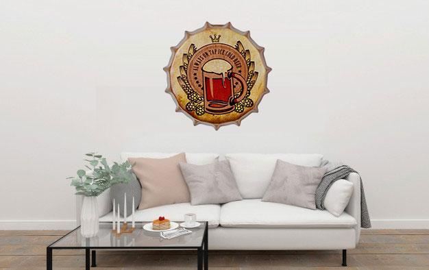 Always On Tap Ice Cold Beer Cap Metal Tin Sign Poster will adorn the look and feel of your wall. This versatile and durable tin sign, metal wall poster can be stuck in any corner of your room, office, shop, shed, garage or store and it will look just as great. Imported Iron. Fashion & Retro Quality Tinned Skin. Four pre-drilled holes for hanging or you may use double-sided tape.