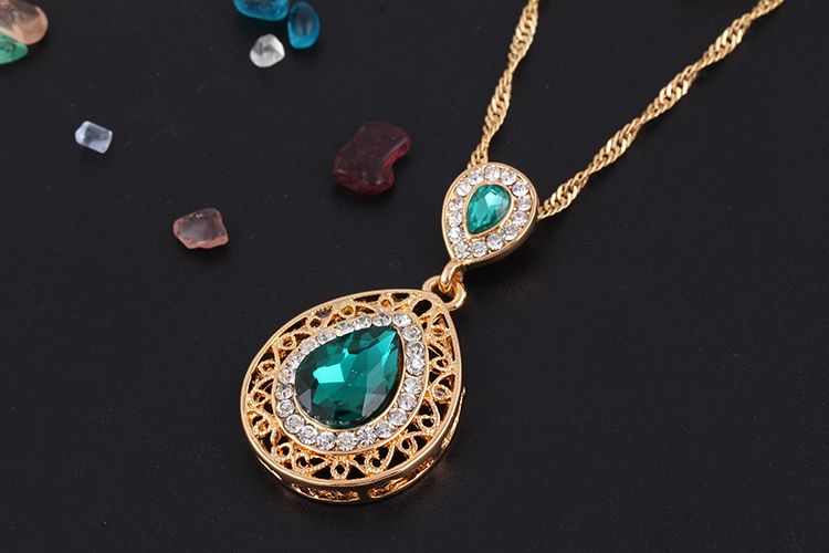 The exquisite green color crystal is the star of this jewelry set which is perfect with bridal wear. You would be stunned by this Fantastic Green Zircon Bridal Jewelry Set which is designed in a water drop style. The presence of zinc alloy in crafting the necklace and earrings looks quite amusing.