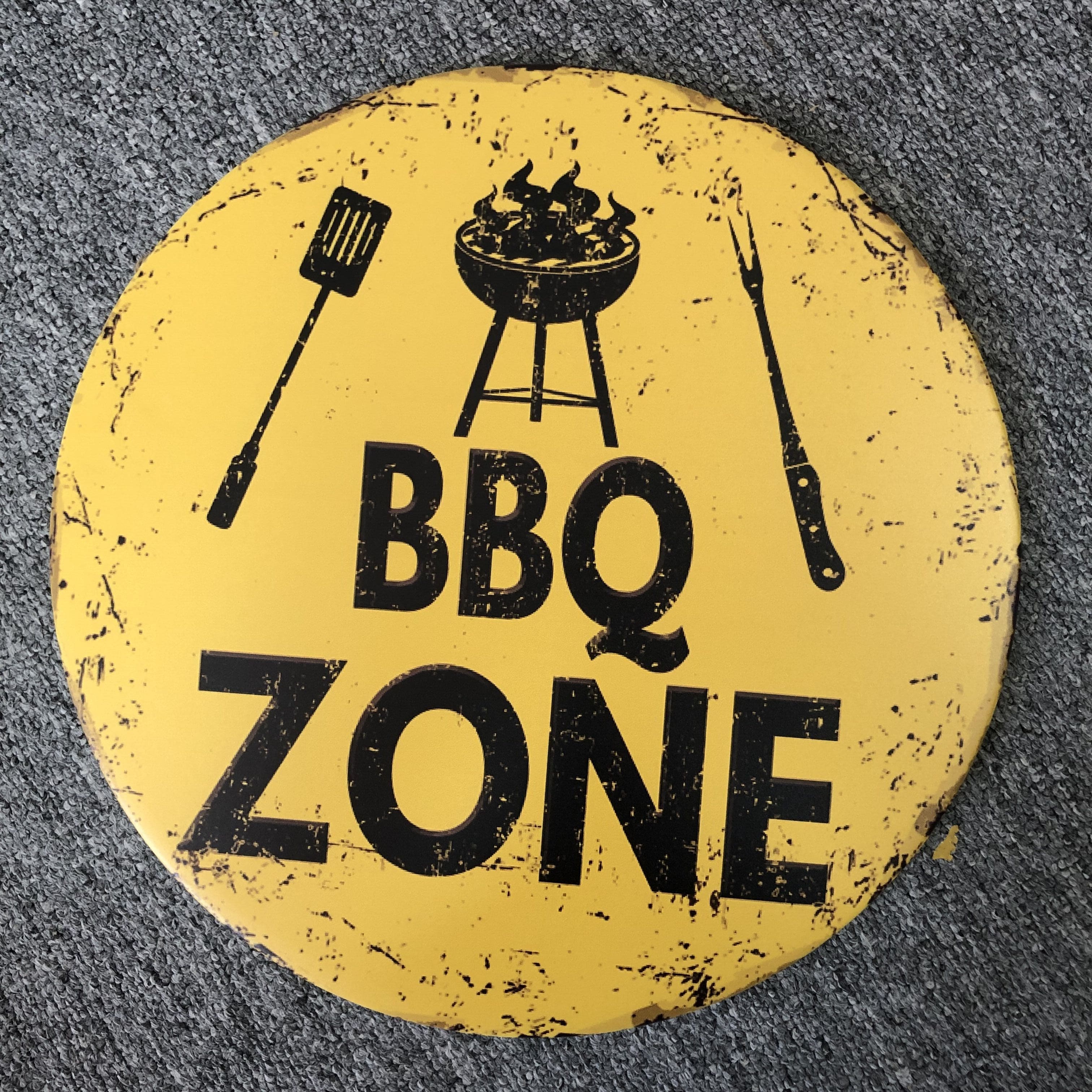 BBQ Zone Round Metal Tin Sign Poster