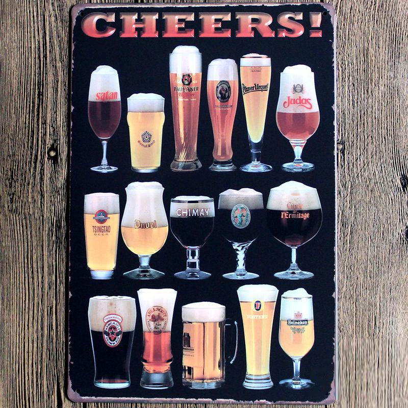 Beer Menu Cheers Metal Tin Sign Poster - Wall metal tin poster will adorn the look and feel of your room's wall. The wall poster has dimensions of 20 x 30 cm and can be stuck in any corner of your room and it will look just as great.