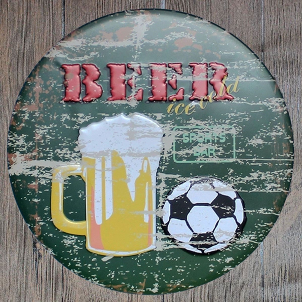 Beer Sports Round Metal Tin Sign Poster will adorn the look and feel of your wall. This versatile and durable tin sign, metal wall poster can be stuck in any corner of your room, office, shop, shed, garage or store and it will look just as great. Imported Iron. Fashion & Retro Quality Tinned Skin. Four pre-drilled holes for hanging or you may use double-sided tape.