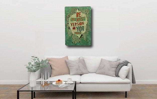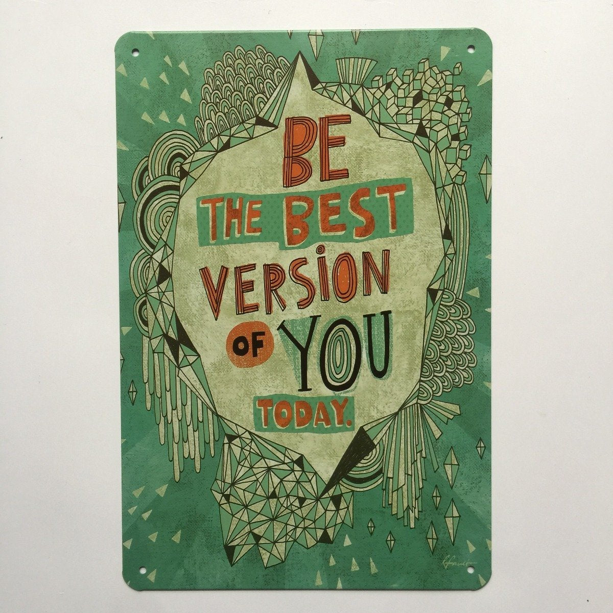 Best Version of You Quote Metal Poster - Wall Metal Tin Poster will adorn the look and feel of your wall. The wall poster has dimensions of 20 x 30 cm and can be stuck in any corner of your room and it will look just as great.