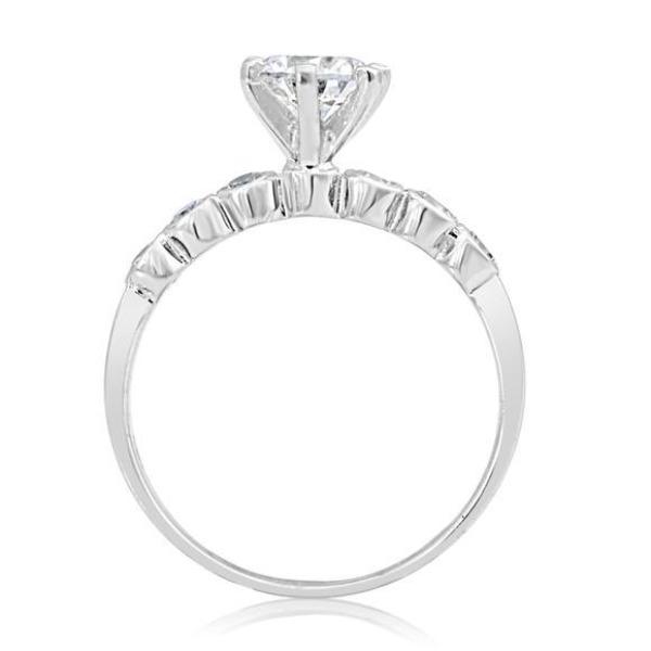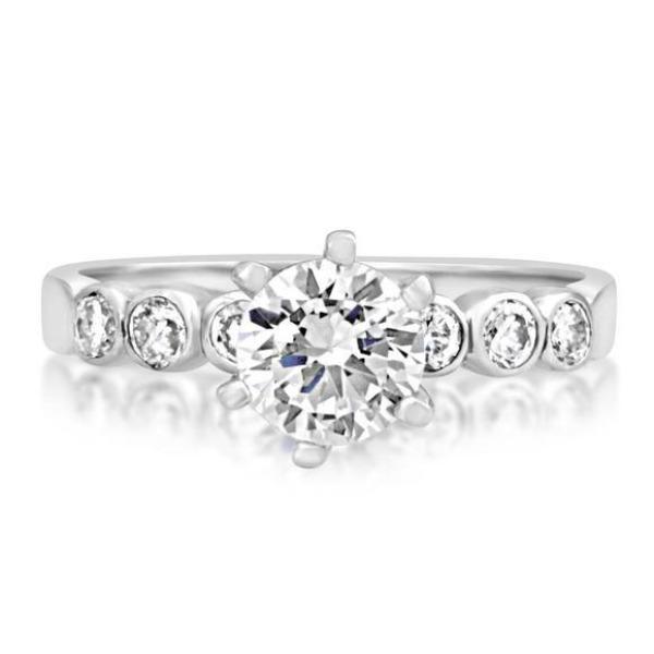 Dress to impress on your big day with this gorgeous engagement and wedding band set. Both rings are handcrafted from sterling silver and feature a band is set with sparkling zirconia crystals. The engagement ring differs in that it also features a large brilliant cut crystal in a delicate five prong setting.