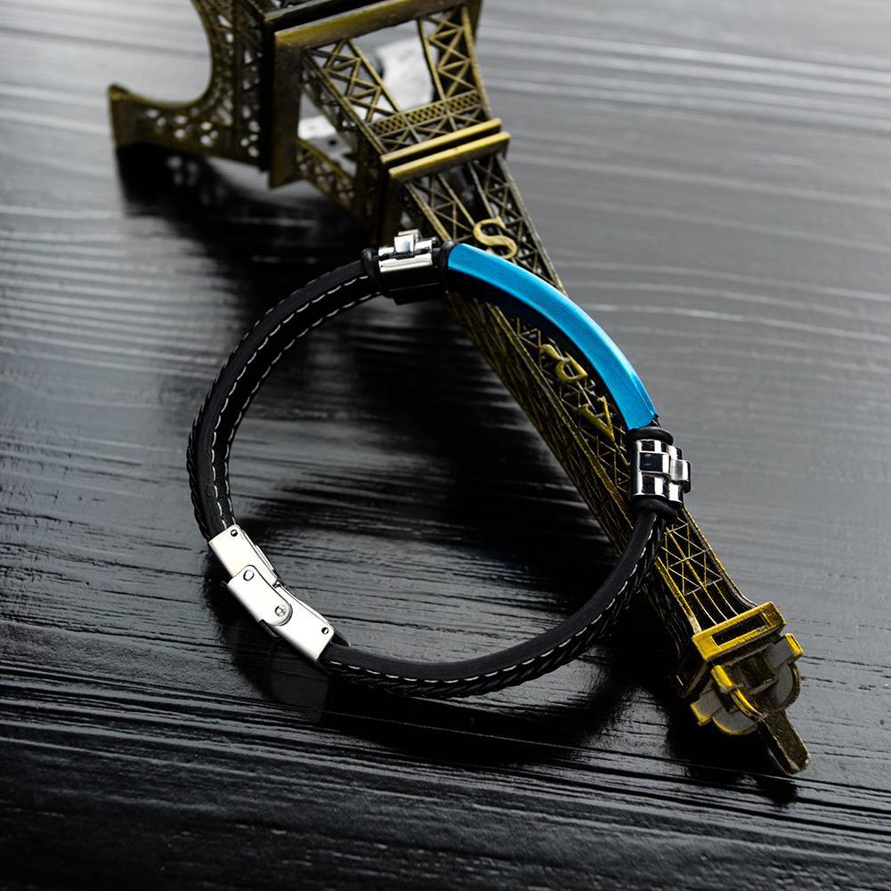 Blue Steel Mens Braided Leather Bracelet