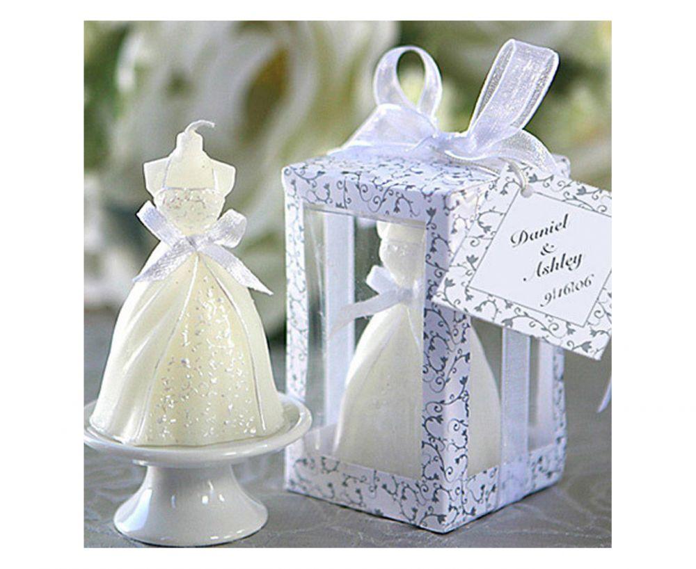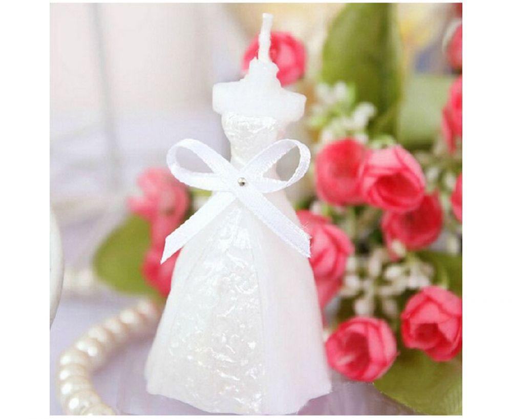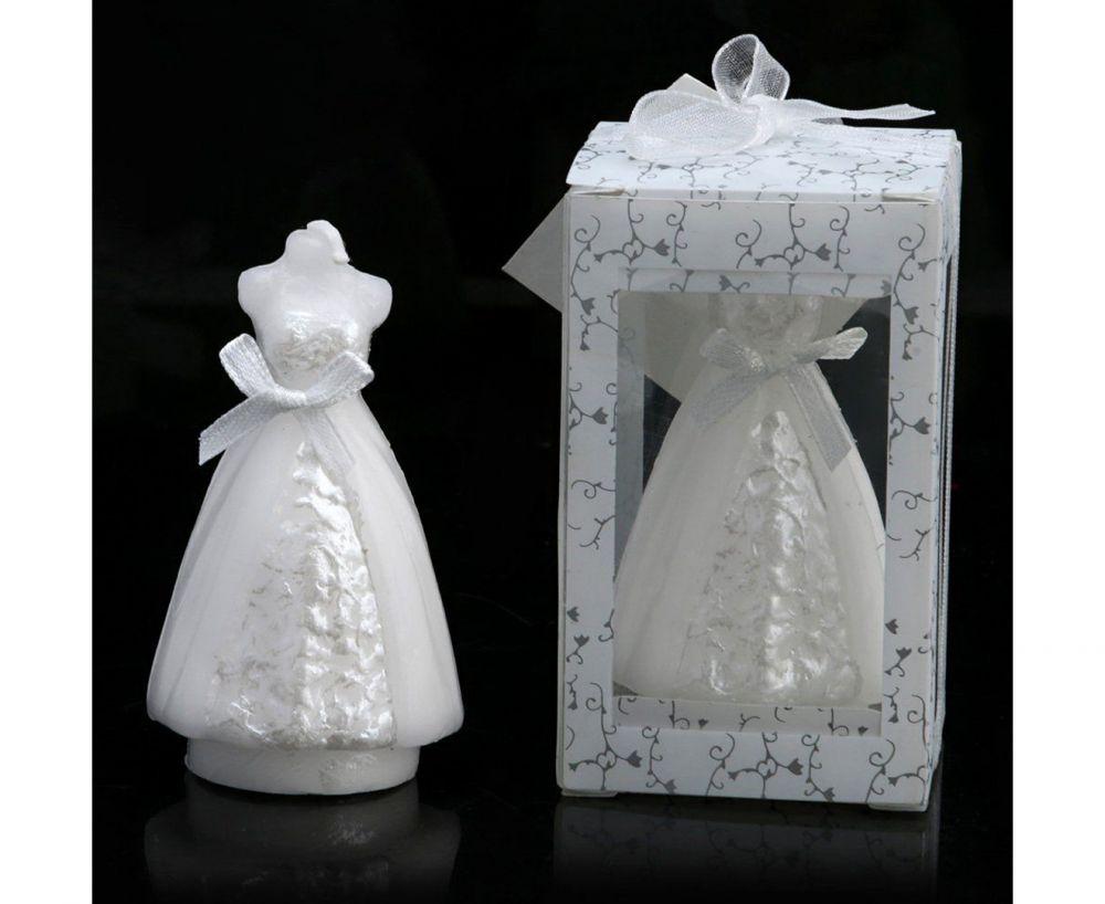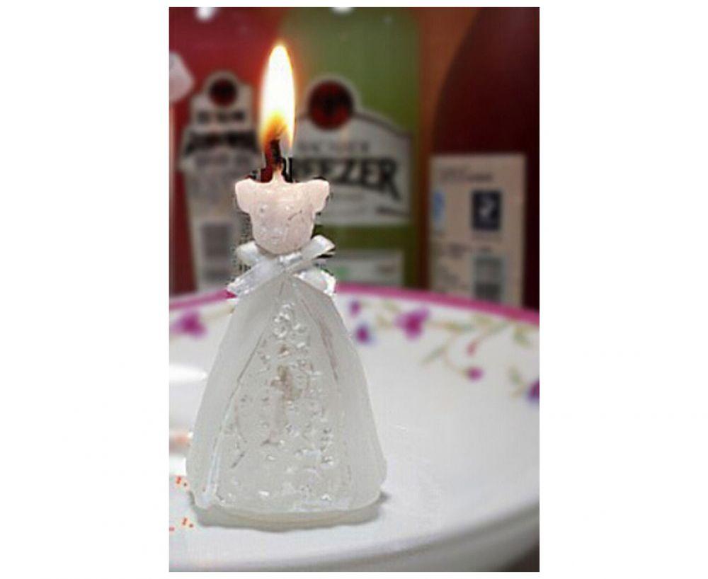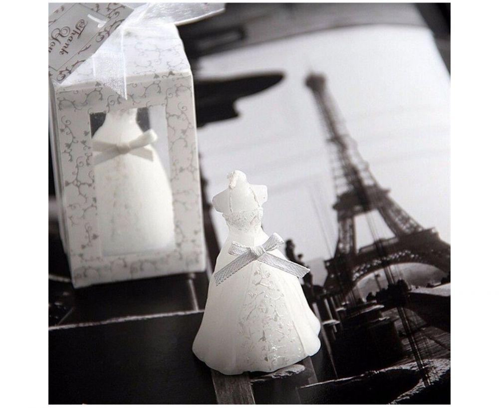 Made from paraffin wax, this stunning wedding dress cake topper is perfect for your big day. You can use it as a cake topper, display candles or even keep it as a reminder of your big day. The candle is fashioned as a flounced wedding dress with silver detailing. It also features a white ribbon as its centrepiece.