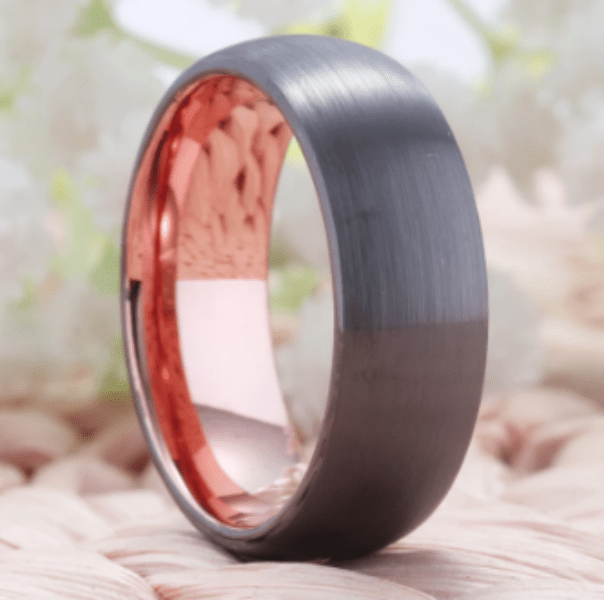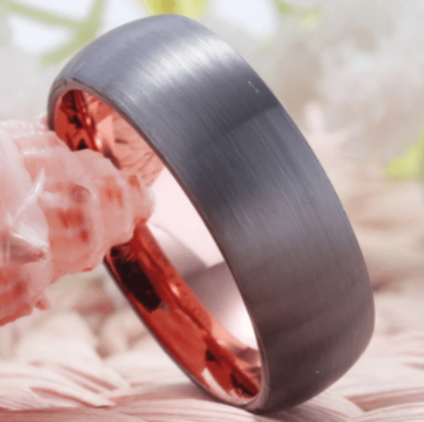 Brushed grey Rose Gold Wedding Engagement Ring for Couple