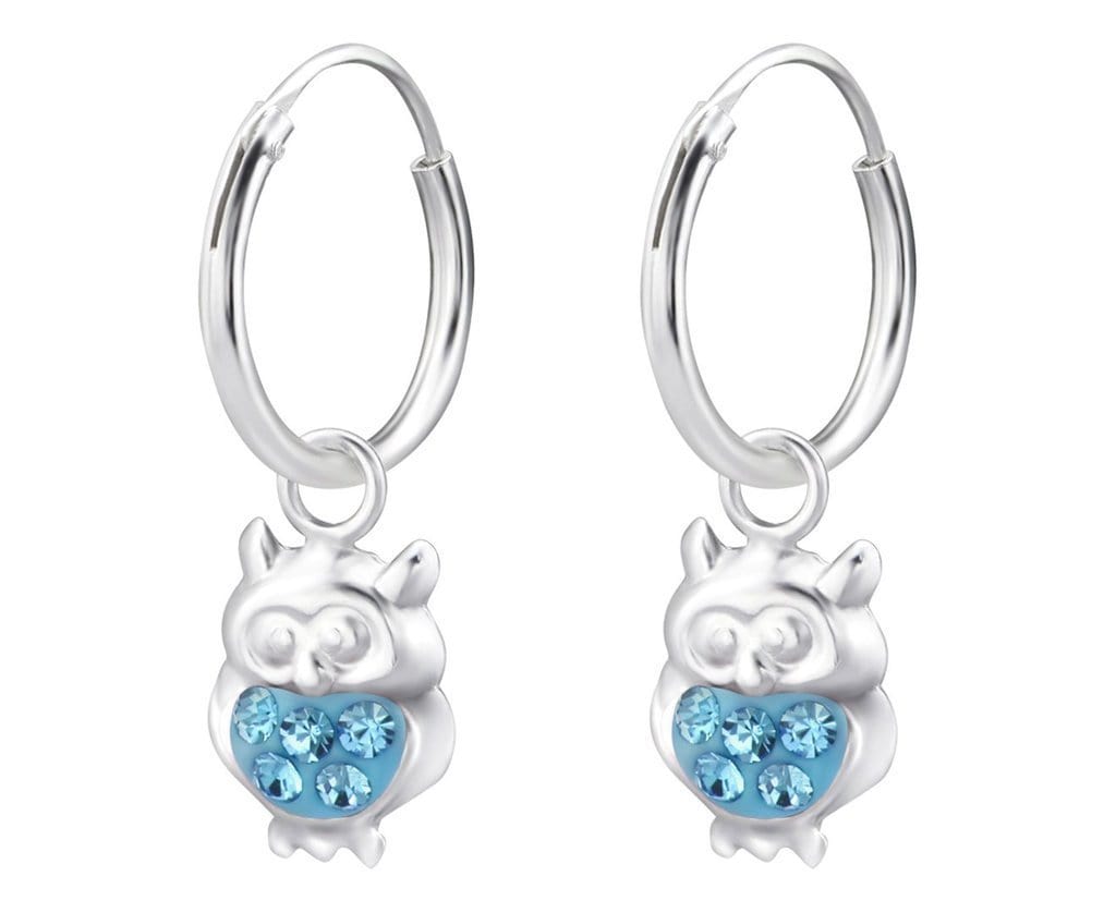 Children's Silver Hanging Owl Crystal Hoop Earrings are sure to be the finishing touch to any outfit. Exquisitely crafted in sterling silver and will give your designs an elegant appearance.