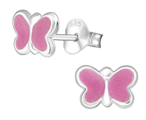 Children's Sterling Silver Pink Glitter Butterfly Stud Earrings
