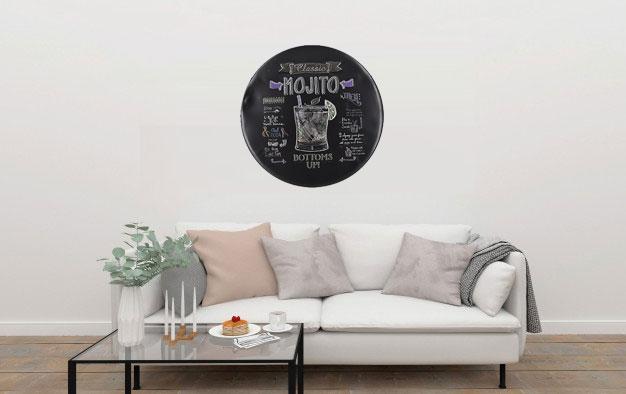 Classic Mojito Round Metal Tin Sign Poster will adorn the look and feel of your wall. This versatile and durable tin sign, metal wall poster can be stuck in any corner of your room, office, shop, shed, garage or store and it will look just as great. Imported Iron. Fashion & Retro Quality Tinned Skin. Four pre-drilled holes for hanging or you may use double-sided tape.