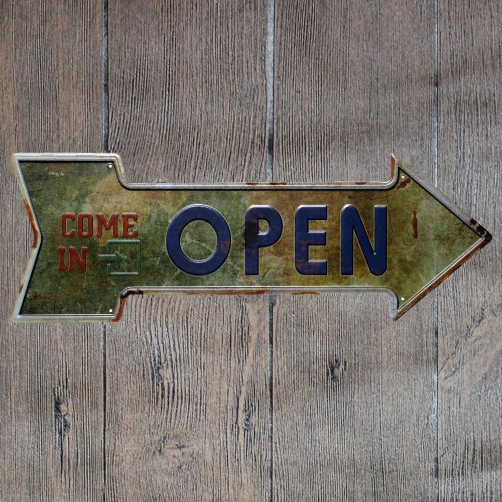 Come in Open Arrow Metal Tin Sign Poster will adorn the look and feel of your wall. This versatile and durable tin sign, metal wall poster can be stuck in any corner of your room, office, shop, shed, garage or store and it will look just as great. Imported Iron. Fashion & Retro Quality Tinned Skin. Four pre-drilled holes for hanging or you may use double-sided tape.
