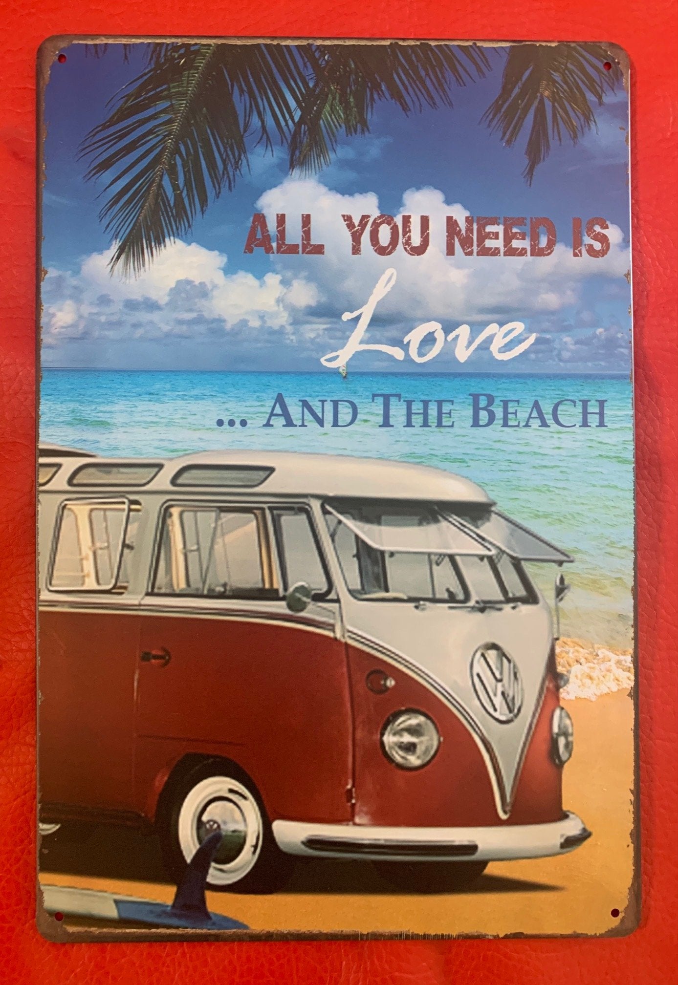 All You Need Is Love and Beach Metal Tin Sign Poster - Wall metal tin poster will adorn the look and feel of your room's wall. The wall poster has dimensions of 20 x 30 cm and can be stuck in any corner of your room and it will look just as great.
