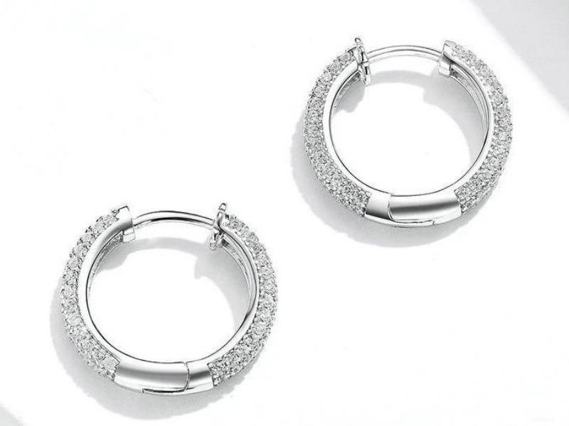 Crystal Studded Silver Hoops. Simple and elegant, this beautiful zirconia studded studs are a great way to add some sparkle to any outfit. There simple design and durable sterling silver base make the a great choice for everyday wear and the versatile design makes them suitable for pairing with both formal and casual outfits.