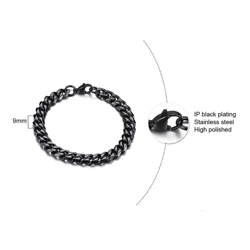 Cuban Link Black Chain Heavy Bracelet - 11mm