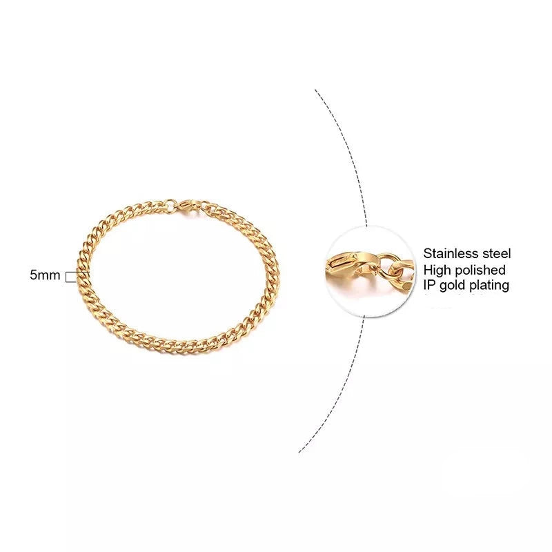 Cuban Link Gold Chain  Bracelet - 5mm