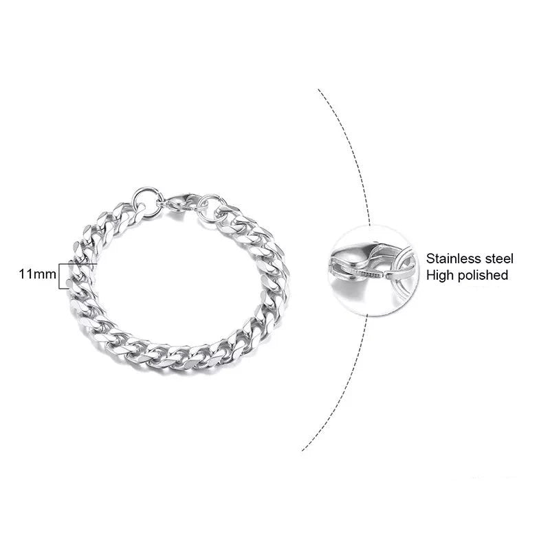Cuban Link Silver Chain Heavy Bracelet - 11mm
