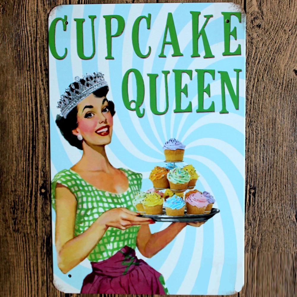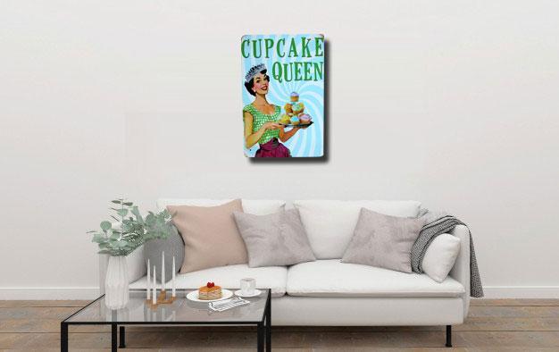 Cup Cake Queen Metal Tin Poster - Wall metal tin poster will adorn the look and feel of your room's wall. The wall poster has dimensions of 20 x 30 cm and can be stuck in any corner of your room and it will look just as great.