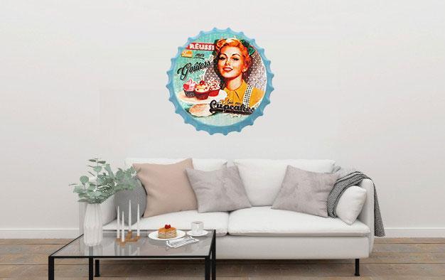 Cupcakes Beer Cap Metal Tin Sign Poster will adorn the look and feel of your wall. This versatile and durable tin sign, metal wall poster can be stuck in any corner of your room, office, shop, shed, garage or store and it will look just as great. Imported Iron. Fashion & Retro Quality Tinned Skin. Four pre-drilled holes for hanging or you may use double-sided tape.