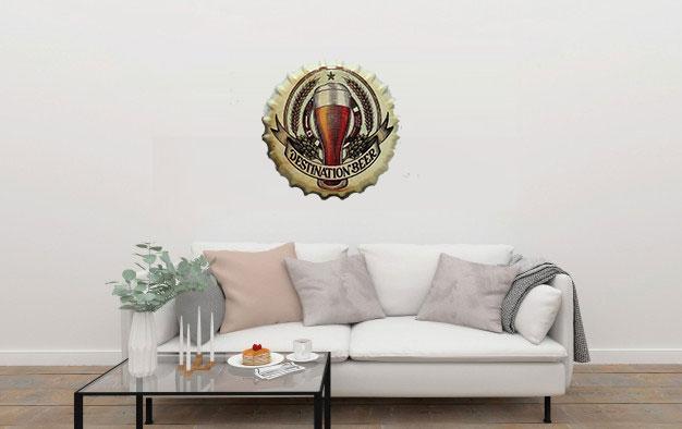 Destination Beer Cap Metal Tin Sign Poster will adorn the look and feel of your wall. This versatile and durable tin sign, metal wall poster can be stuck in any corner of your room, office, shop, shed, garage or store and it will look just as great. Imported Iron. Fashion & Retro Quality Tinned Skin. Four pre-drilled holes for hanging or you may use double-sided tape.