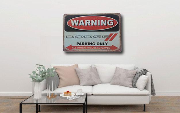 Dodge Parking Only Sign Metal Poster - Wall Metal Tin Poster will adorn the look and feel of your wall. The wall poster has dimensions of 20 x 30 cm and can be stuck in any corner of your room and it will look just as great.