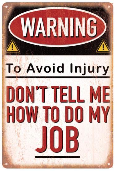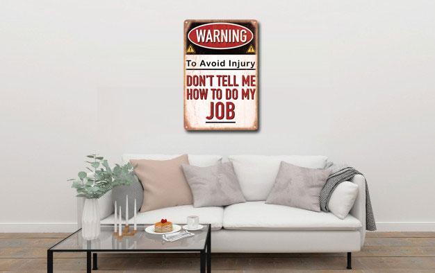 Don't Tell Me How to do My Job Sign- Wall metal tin poster will adorn the look and feel of your room's wall. The wall poster has dimensions of 20 x 30 cm and can be stuck in any corner of your room and it will look just as great.