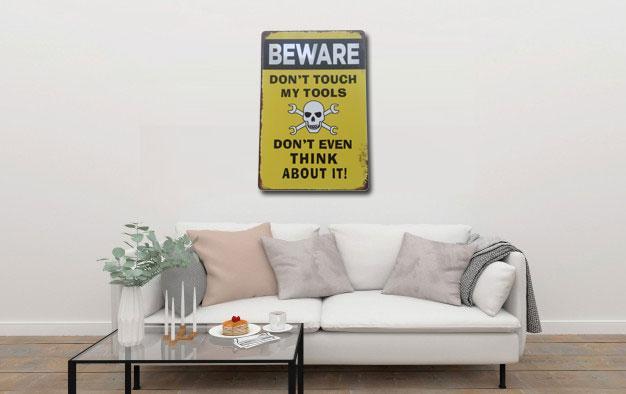 Beware Dont Touch My Tools Metal Tin Poster