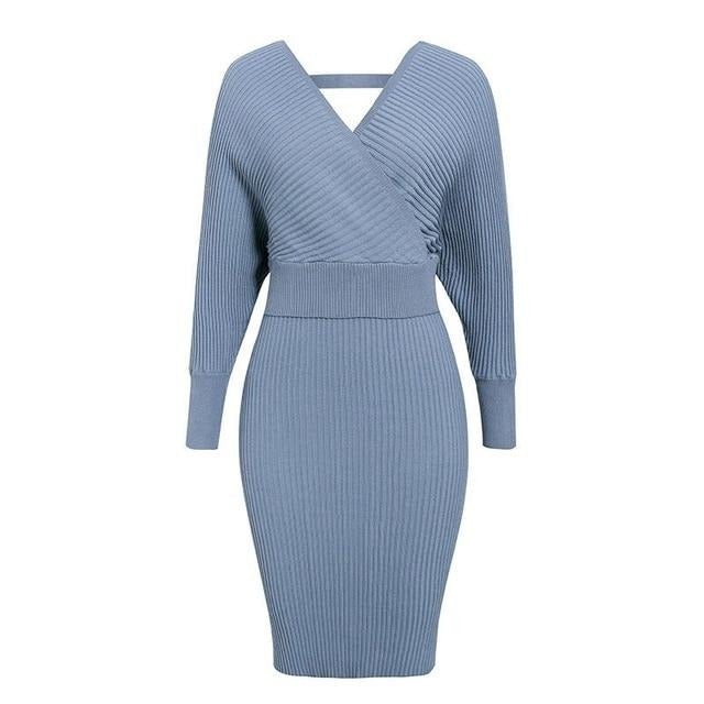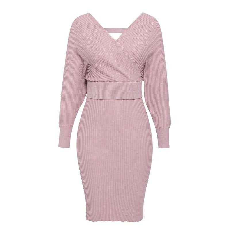 If your style commitment is understated sensuality, this ribbed knitwear dress offers comfort and complete femininity. Coming in a soft pastel dusky pink and a pale denim blue, it's the perfect between seasons go to.