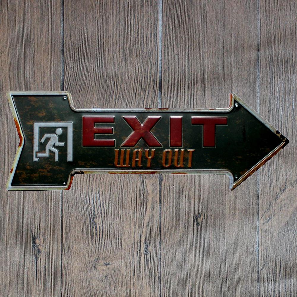 Exit Arrow Metal Tin Sign Poster will adorn the look and feel of your wall. This versatile and durable tin sign, metal wall poster can be stuck in any corner of your room, office, shop, shed, garage or store and it will look just as great. Imported Iron. Fashion & Retro Quality Tinned Skin. Four pre-drilled holes for hanging or you may use double-sided tape.