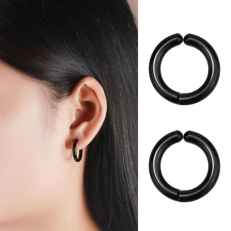 Non-Pierced Earrings for Men. Fake Hoop Earrings Stainless Steel Clip On Huggie Earrings for Men.