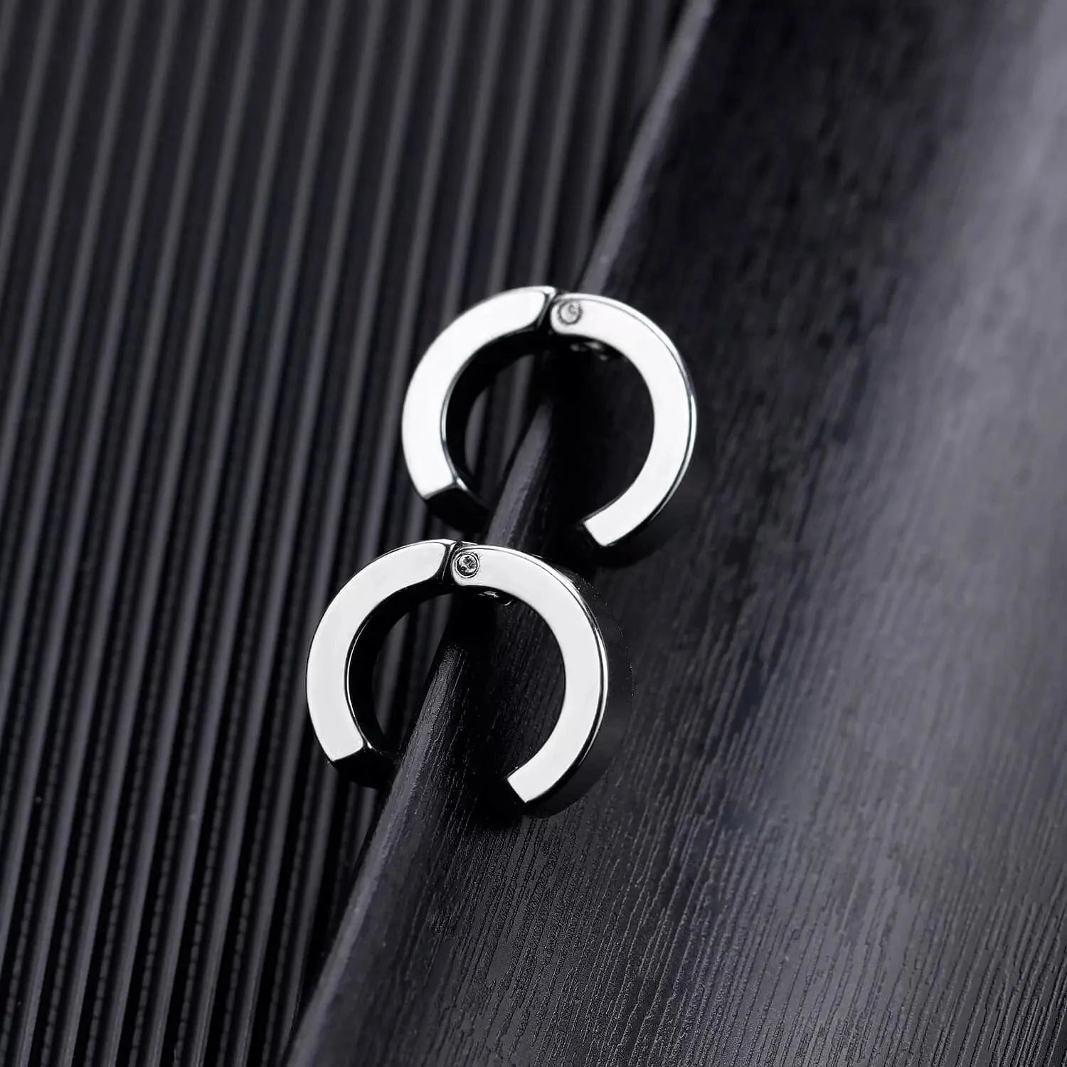 Non-Pierced Earrings for Men. Fake Hoop Earrings Stainless Steel Clip On Huggie Earrings for Men.