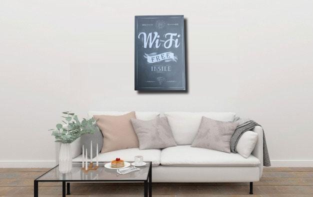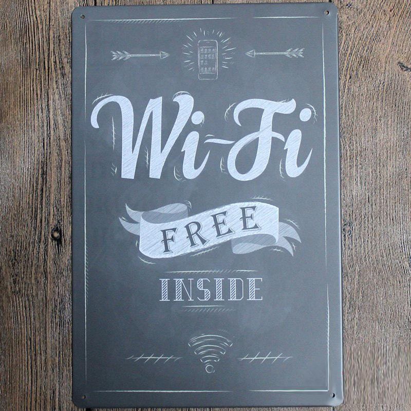 Free Wifi Inside Metal Tin Sign Poster - Wall metal tin poster will adorn the look and feel of your room's wall. The wall poster has dimensions of 20 x 30 cm and can be stuck in any corner of your room and it will look just as great.