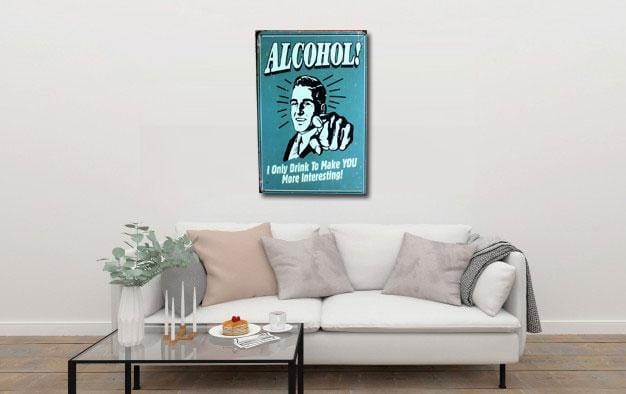 Funny Alcohol Tin Sign Metal Poster will adorn the look and feel of your room's wall. The wall poster has dimensions of 20 x 30 cm and can be stuck in any corner of your room and it will look just as great.