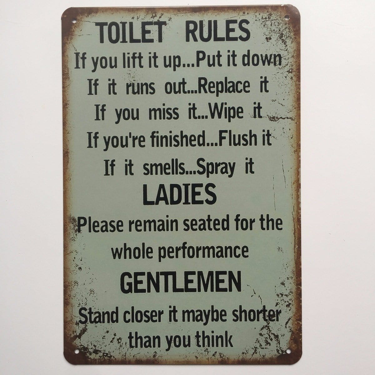Funny Bathroom - Toilet Rules Signs metal poster can be used in home, bars, restaurants, garages, etc