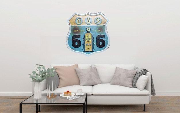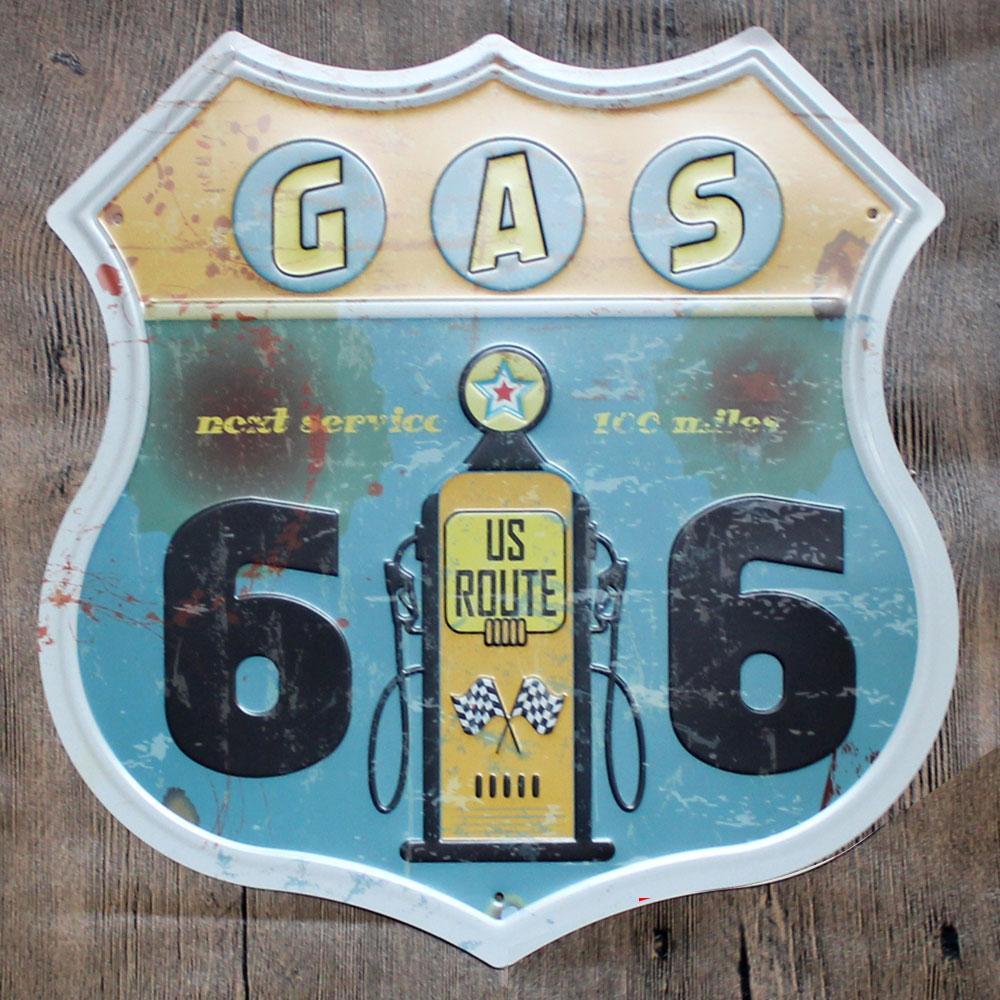 Gas 66 Large Metal Tin Sign Poster will adorn the look and feel of your wall. This versatile and durable tin sign, metal wall poster can be stuck in any corner of your room, office, shop, shed, garage or store and it will look just as great. Imported Iron. Fashion & Retro Quality Tinned Skin. Four pre-drilled holes for hanging or you may use double-sided tape.