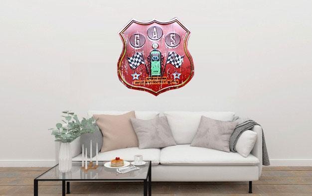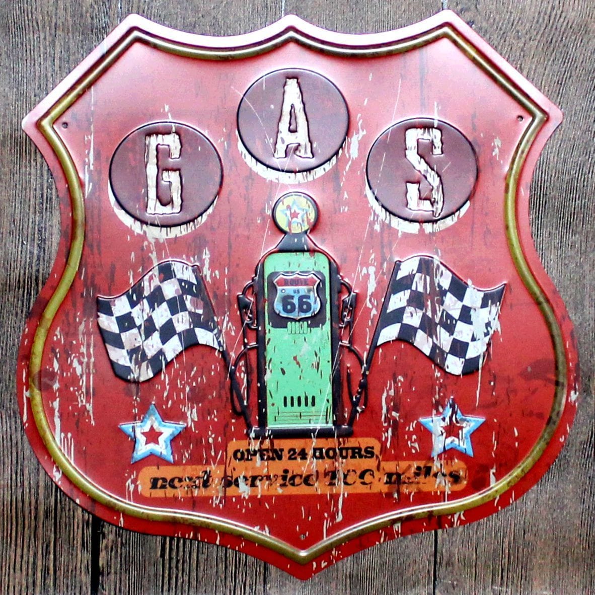 Gas Red Large Metal Tin Sign Poster will adorn the look and feel of your wall. This versatile and durable tin sign, metal wall poster can be stuck in any corner of your room, office, shop, shed, garage or store and it will look just as great. Imported Iron. Fashion & Retro Quality Tinned Skin. Four pre-drilled holes for hanging or you may use double-sided tape.