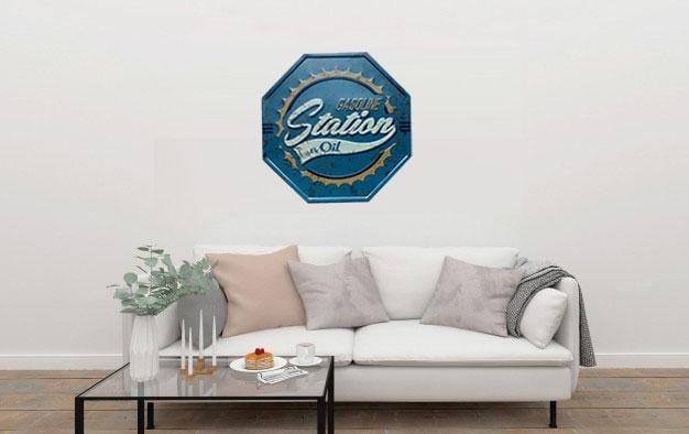 Gasoline Staton Octagon Metal Tin Sign Poster will adorn the look and feel of your wall. This versatile and durable tin sign, metal wall poster can be stuck in any corner of your room, office, shop, shed, garage or store and it will look just as great. Imported Iron. Fashion & Retro Quality Tinned Skin. Four pre-drilled holes for hanging or you may use double-sided tape.