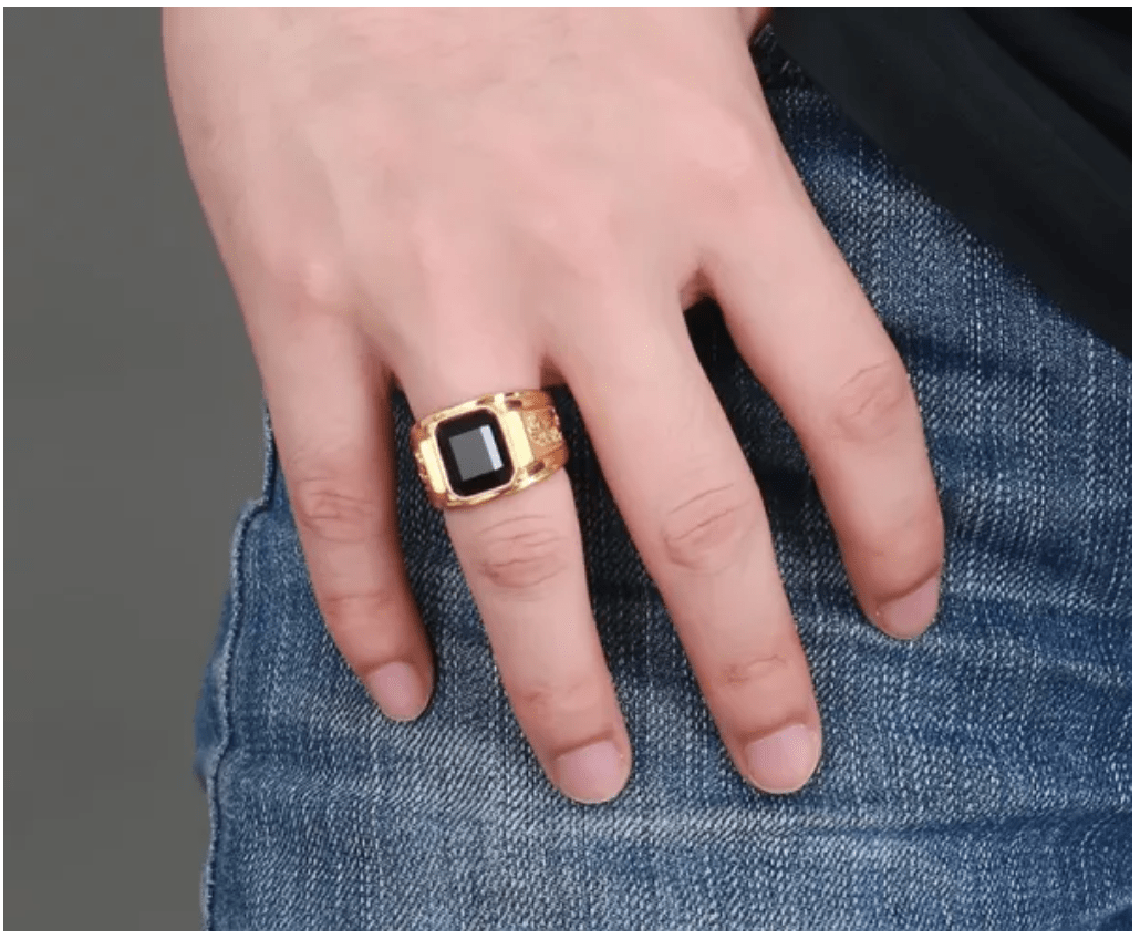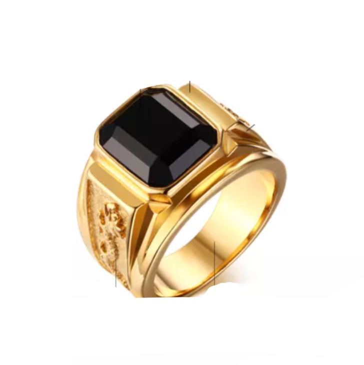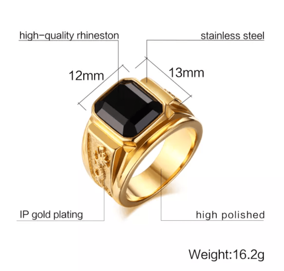 Gold Dragon Black Stone Signet Ring for Men