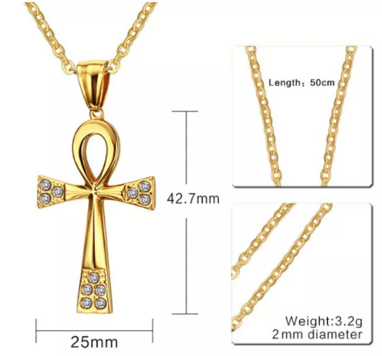 Gold Mens Egypt Cross Necklace