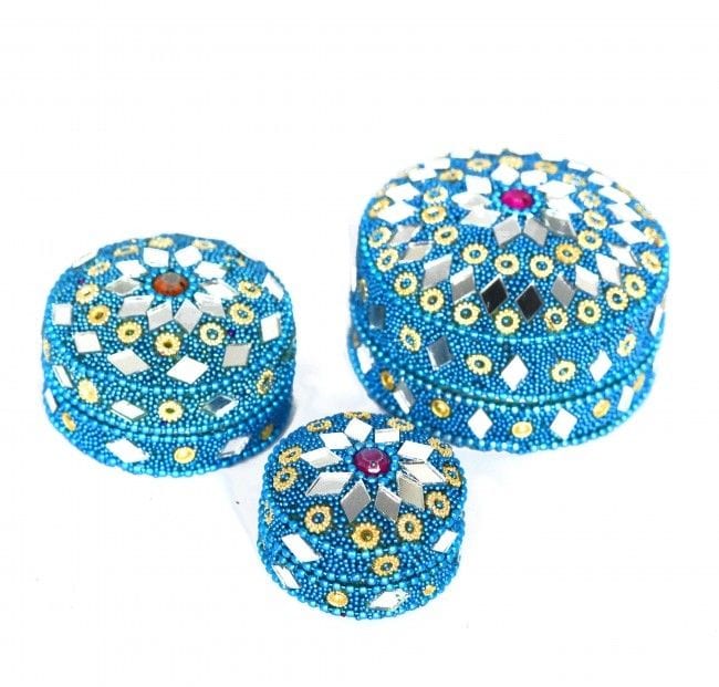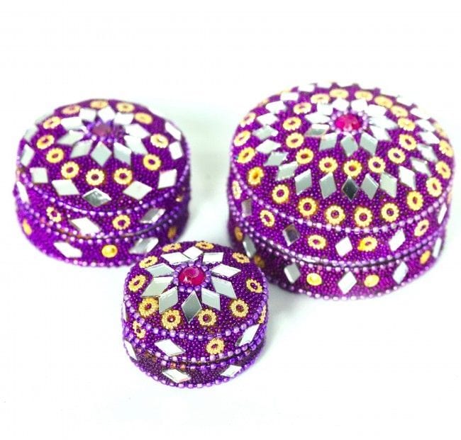 These brightly colored boxes handmade with love are a wonderful addition to your collectables. You can use these multi-purpose boxes as a jewellery box, a button box, a vermillion box or simply a showpiece on your mantle. Irrespective of how you use it, its beautiful cut glass work and bright hues are sure to add a traditional flavour to your personal space.
