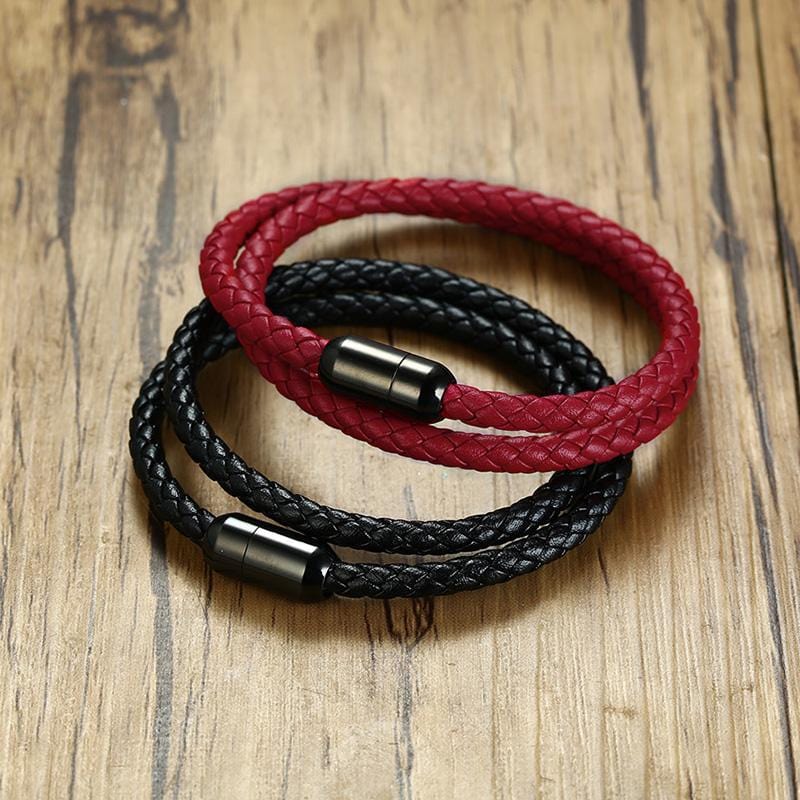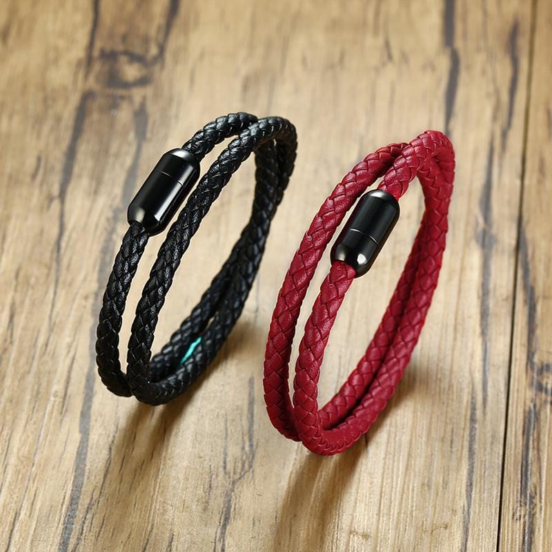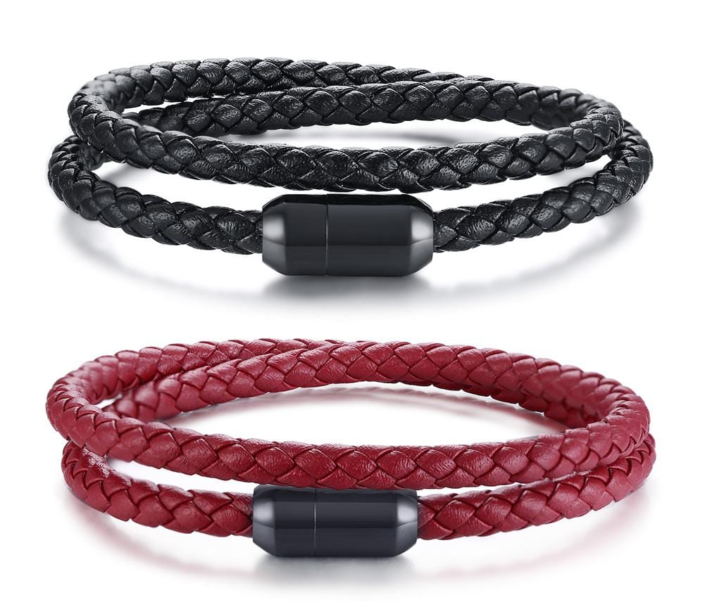 Handmade Magnetic Buckle Braided Leather Bracelet