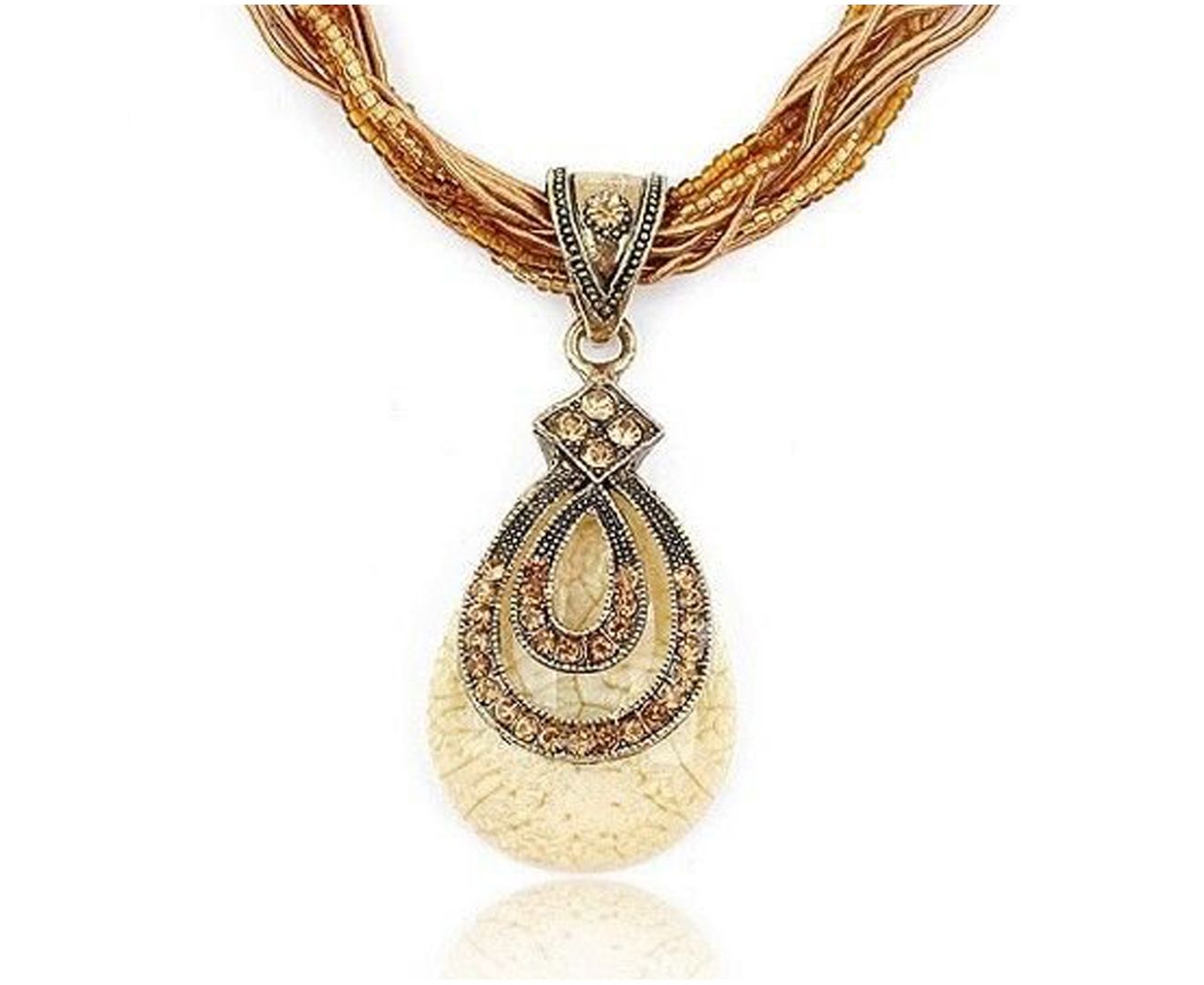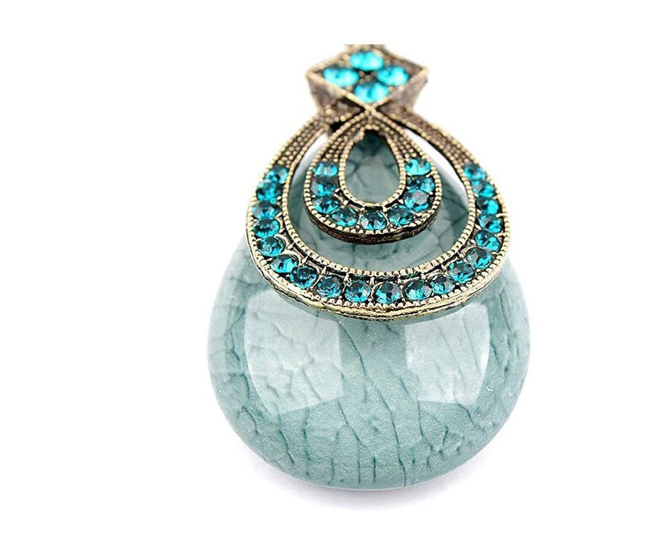 The handmade retro necklace drop gem with crystal is natural and elegant. Inspired by the dew drops that you see every morning, the pendant is drop shaped and is crafted in sterling silver. The mystical drop of dew that is caught between the sterling braided silver branches in blue, gold and silver colours. Its composite turquoise pendant adds to the design of this necklace giving a contrast of powerful beauty.