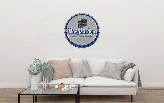 Hoegarden Beer Cap Metal Tin Sign Poster will adorn the look and feel of your wall. This versatile and durable tin sign, metal wall poster can be stuck in any corner of your room, office, shop, shed, garage or store and it will look just as great. Imported Iron. Fashion & Retro Quality Tinned Skin. Four pre-drilled holes for hanging or you may use double-sided tape.