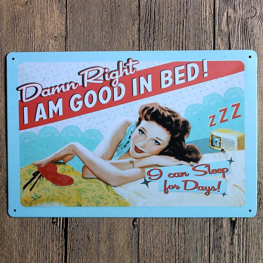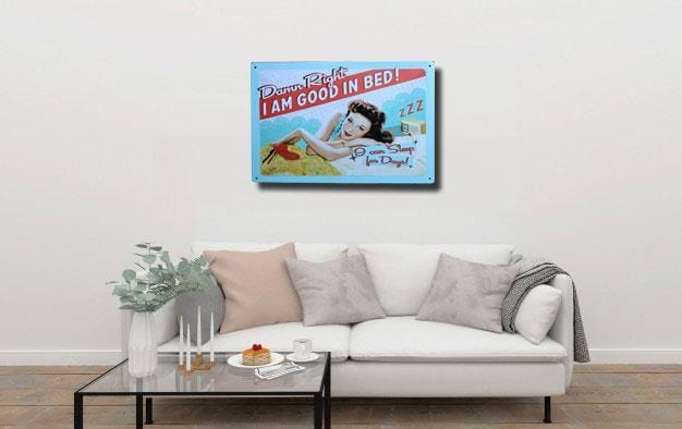 I am good in Bed Metal TIn Poster - Wall metal tin poster will adorn the look and feel of your room's wall. The wall poster has dimensions of 20 x 30 cm and can be stuck in any corner of your room and it will look just as great.