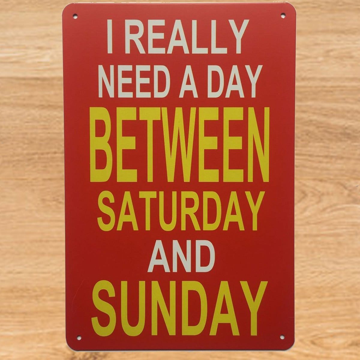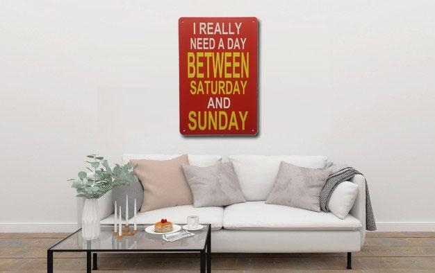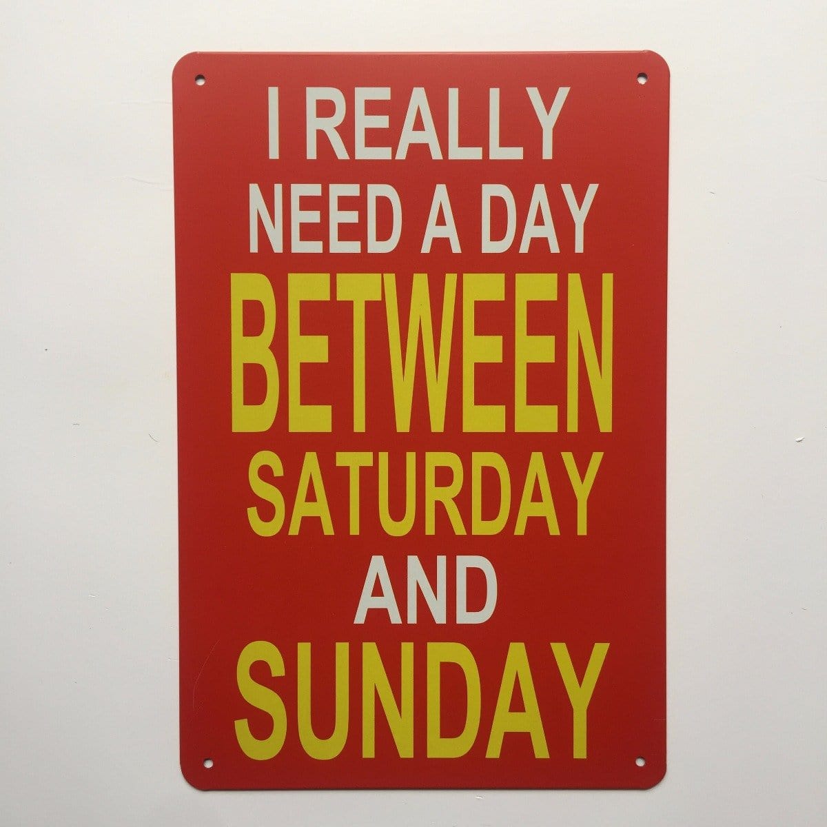 I Really Need A Day Between Saturday And Sunday Poster- Wall metal tin poster will adorn the look and feel of your room's wall. The wall poster has dimensions of 20 x 30 cm and can be stuck in any corner of your room and it will look just as great.